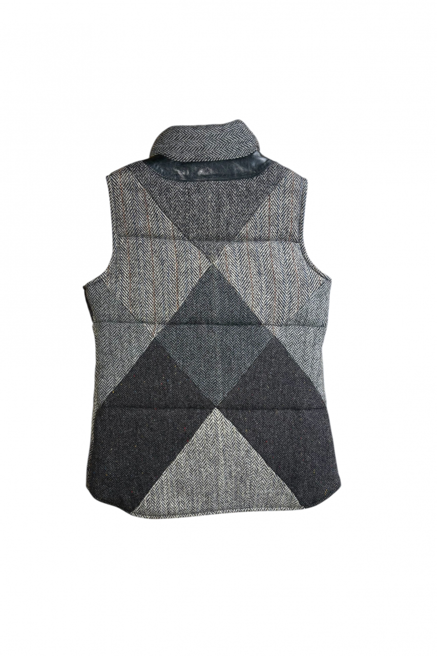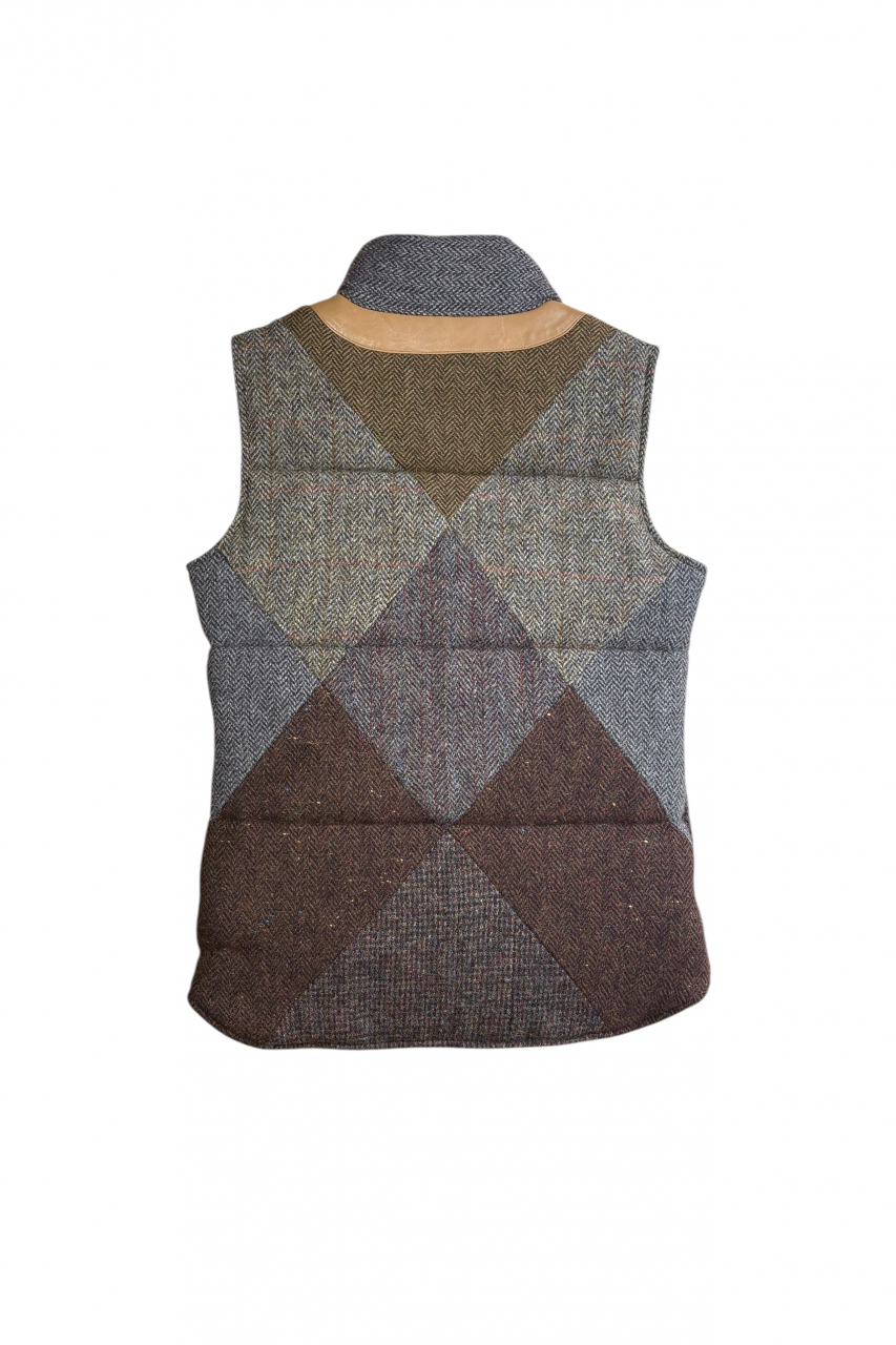 Upcycled Harris Tweed Ladies Padded Gilet with Leather Trim (HTWGLTS1)