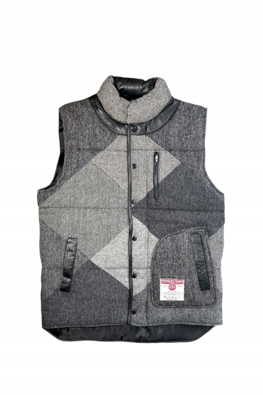 Upcycled Harris Tweed Padded Gilet with Leather Trim (HTMGLTS2)