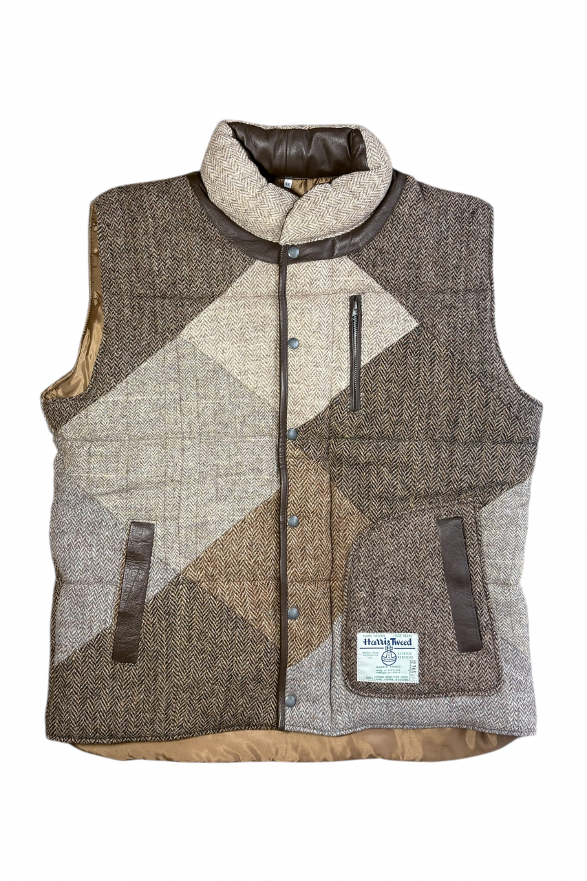 Upcycled Harris Tweed Padded Gilet with Leather Trim (HTMGLT4XL3)