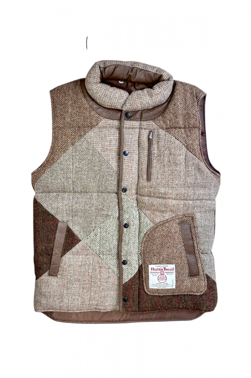 Upcycled Harris Tweed Padded Gilet with Leather Trim (HTMGLT4XL3)