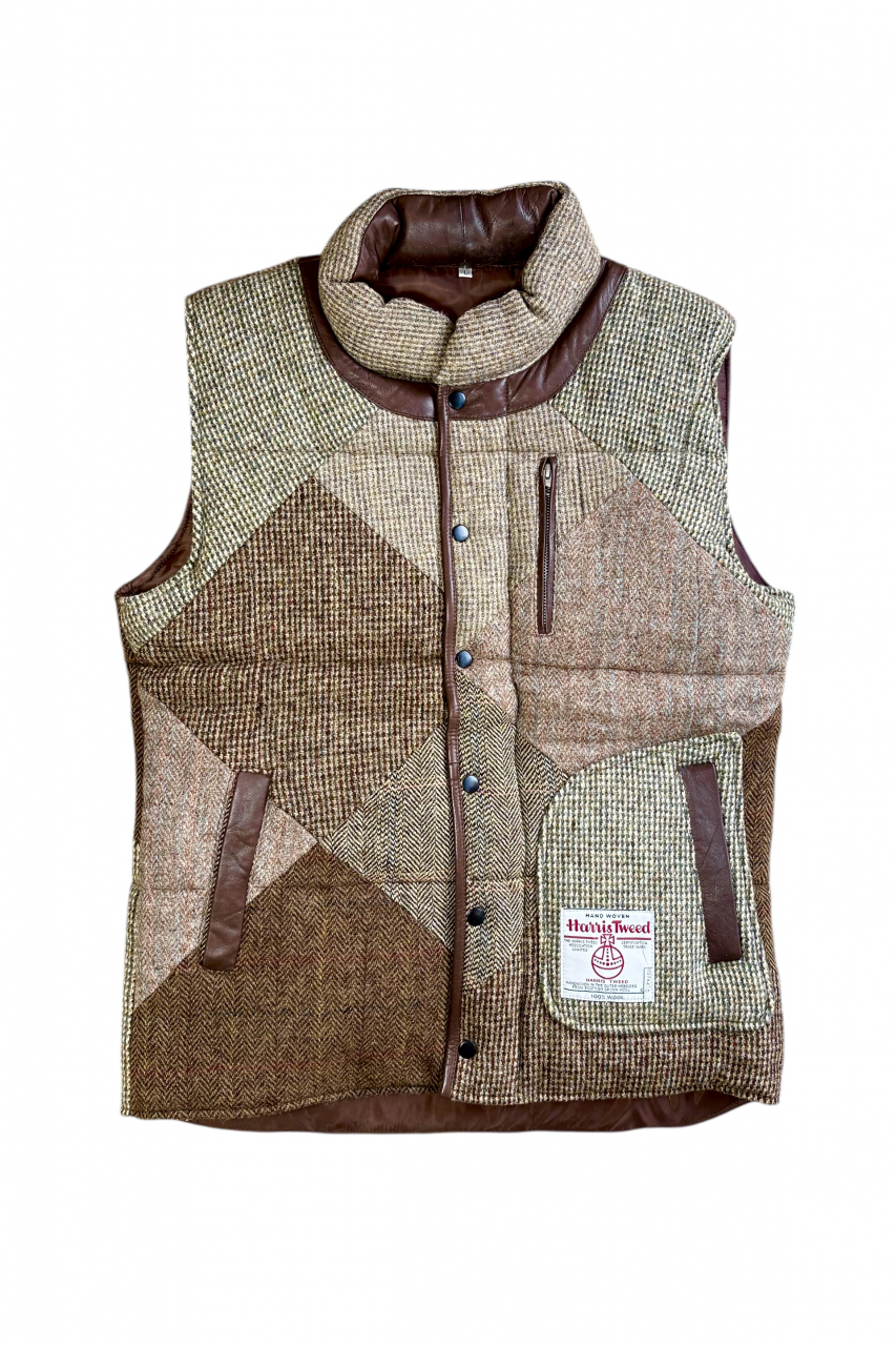 Upcycled Harris Tweed Padded Gilet with Leather Trim (HTMGLTL8)