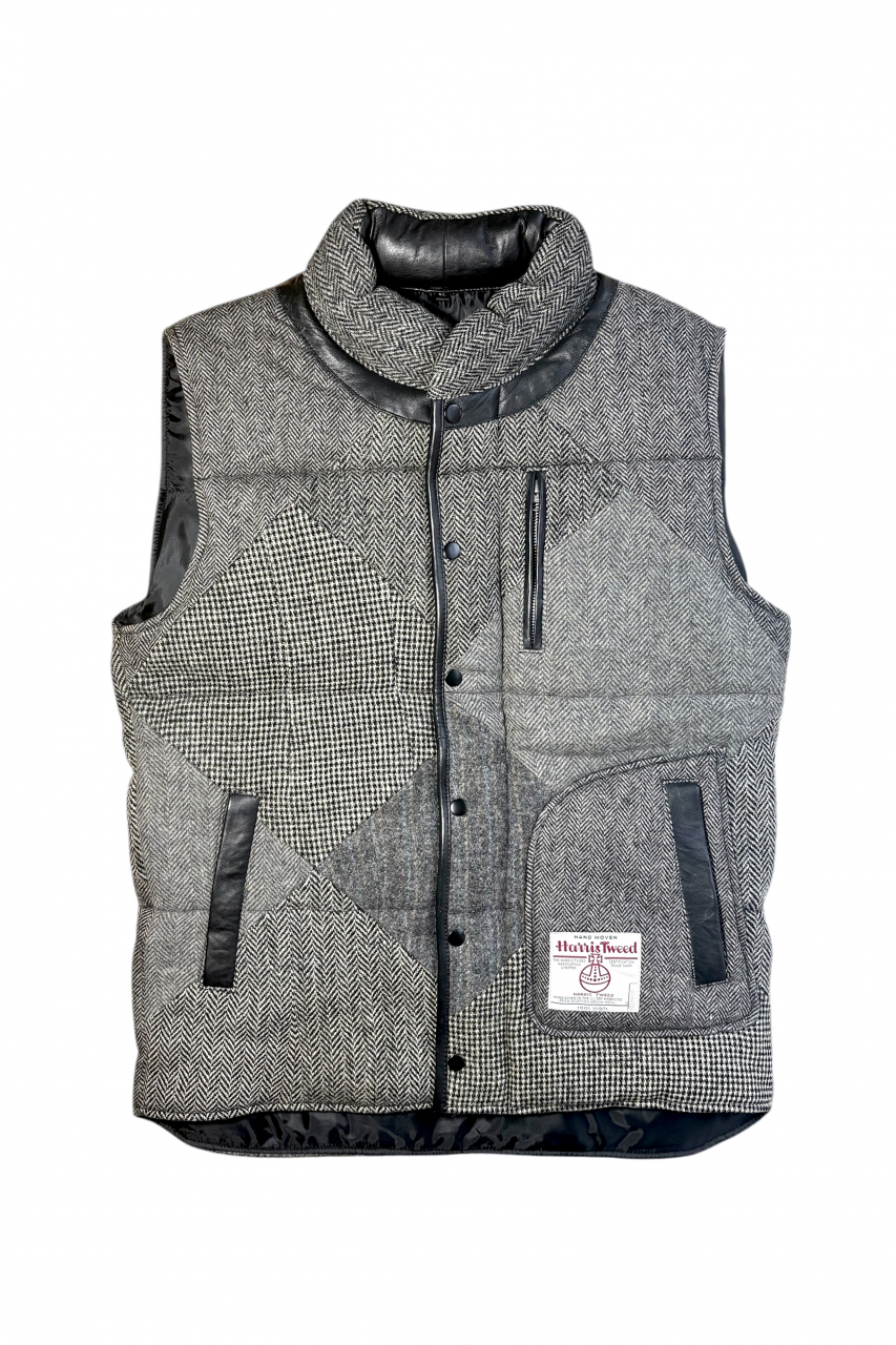 Upcycled Harris Tweed Padded Gilet with Leather Trim (HTMGLT4XL3)
