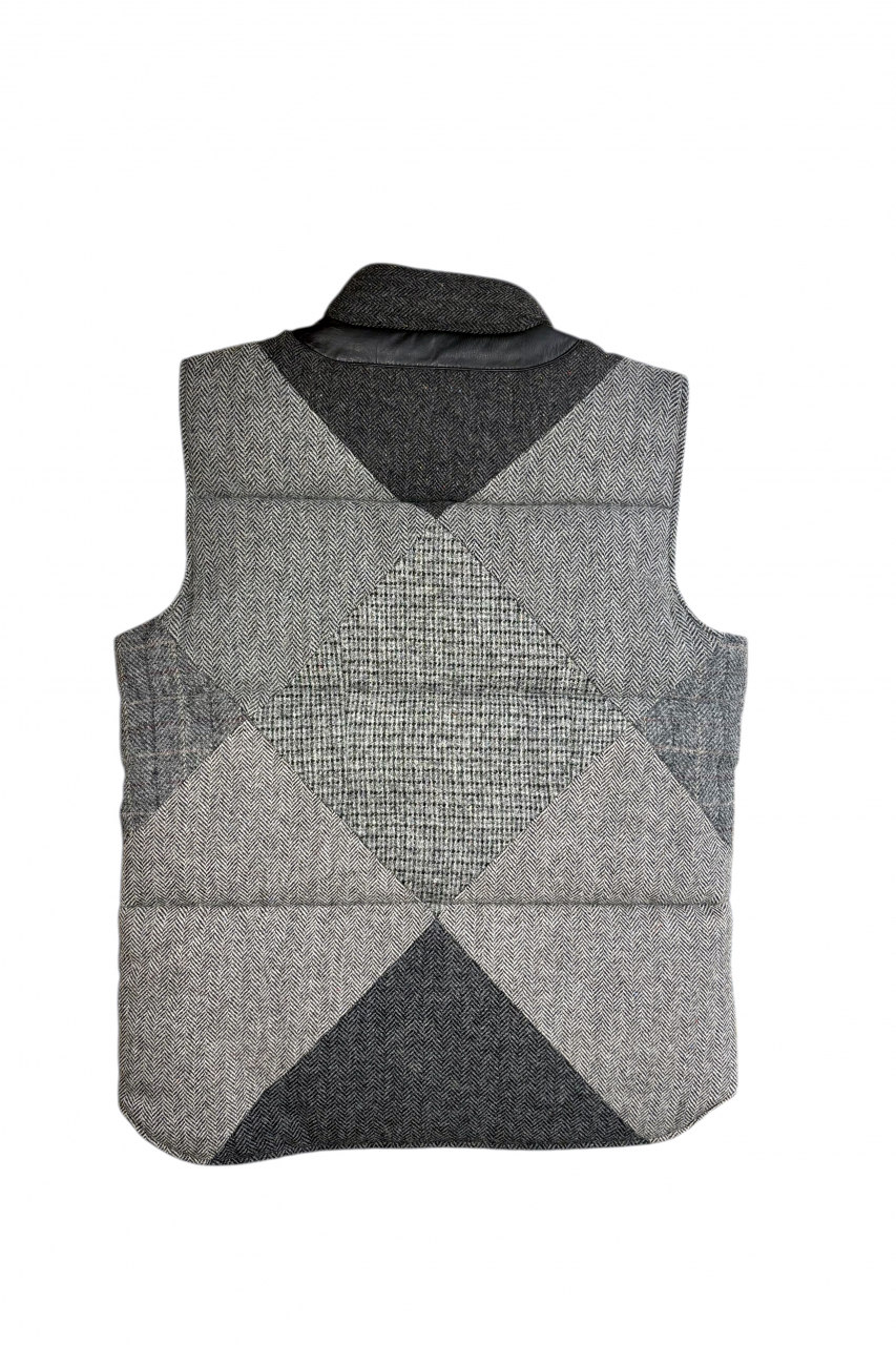Upcycled Harris Tweed Padded Gilet with Leather Trim (HTMGLTXL12)