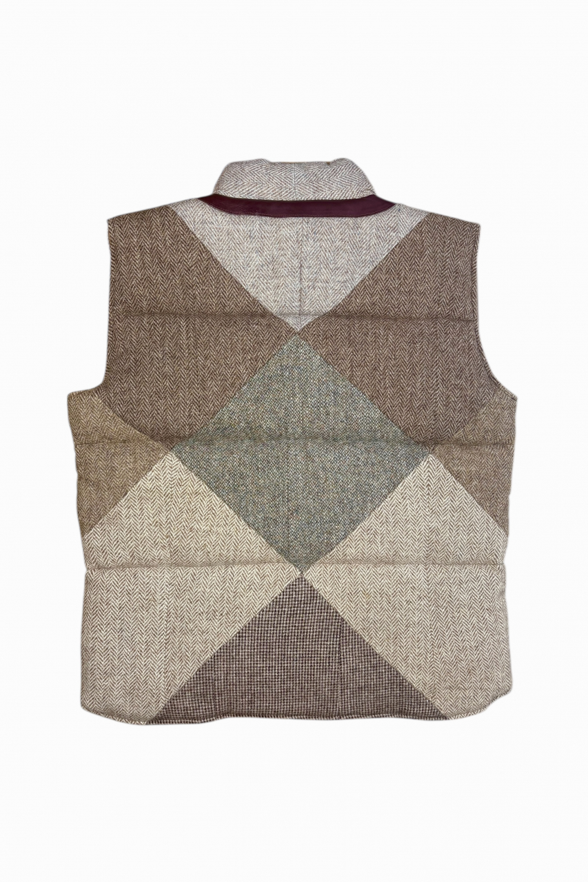 Upcycled Harris Tweed Padded Gilet with Leather Trim (HTMGLT4XL3)