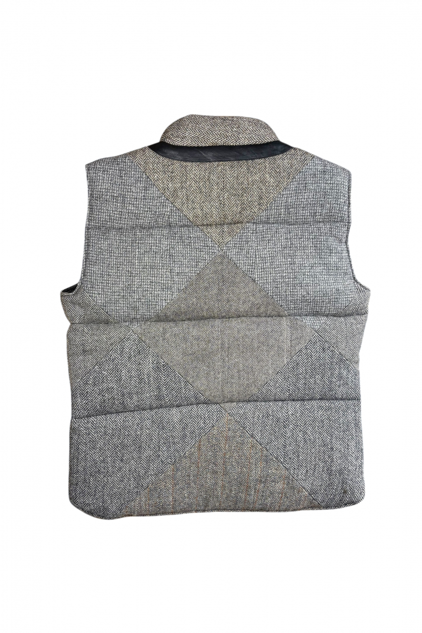 Upcycled Harris Tweed Padded Gilet with Leather Trim (HTMGLTM3)