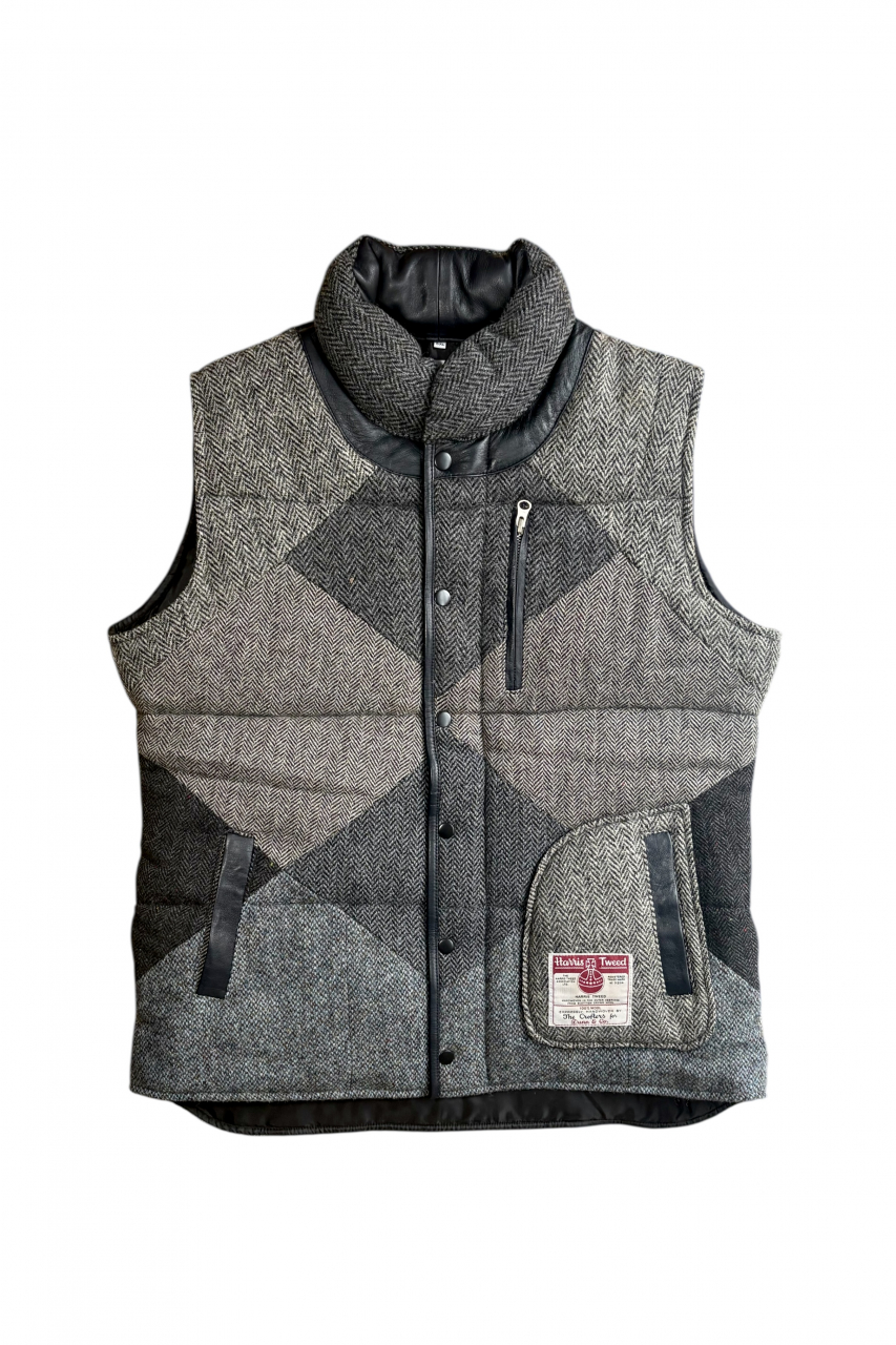 Upcycled Harris Tweed Padded Gilet with Leather Trim (HTMGLT2XL2)