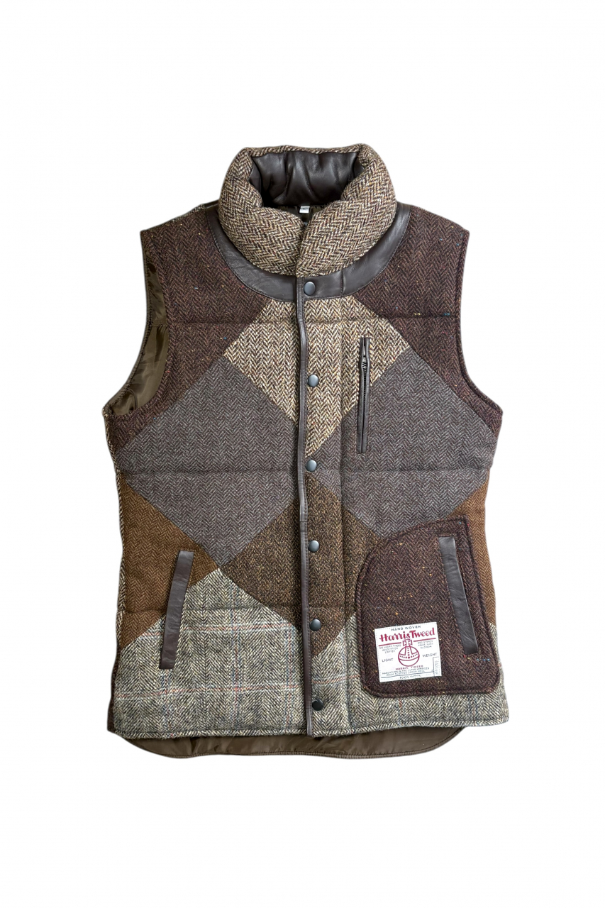 Upcycled Harris Tweed Padded Gilet with Leather Trim (HTMGLTM4)