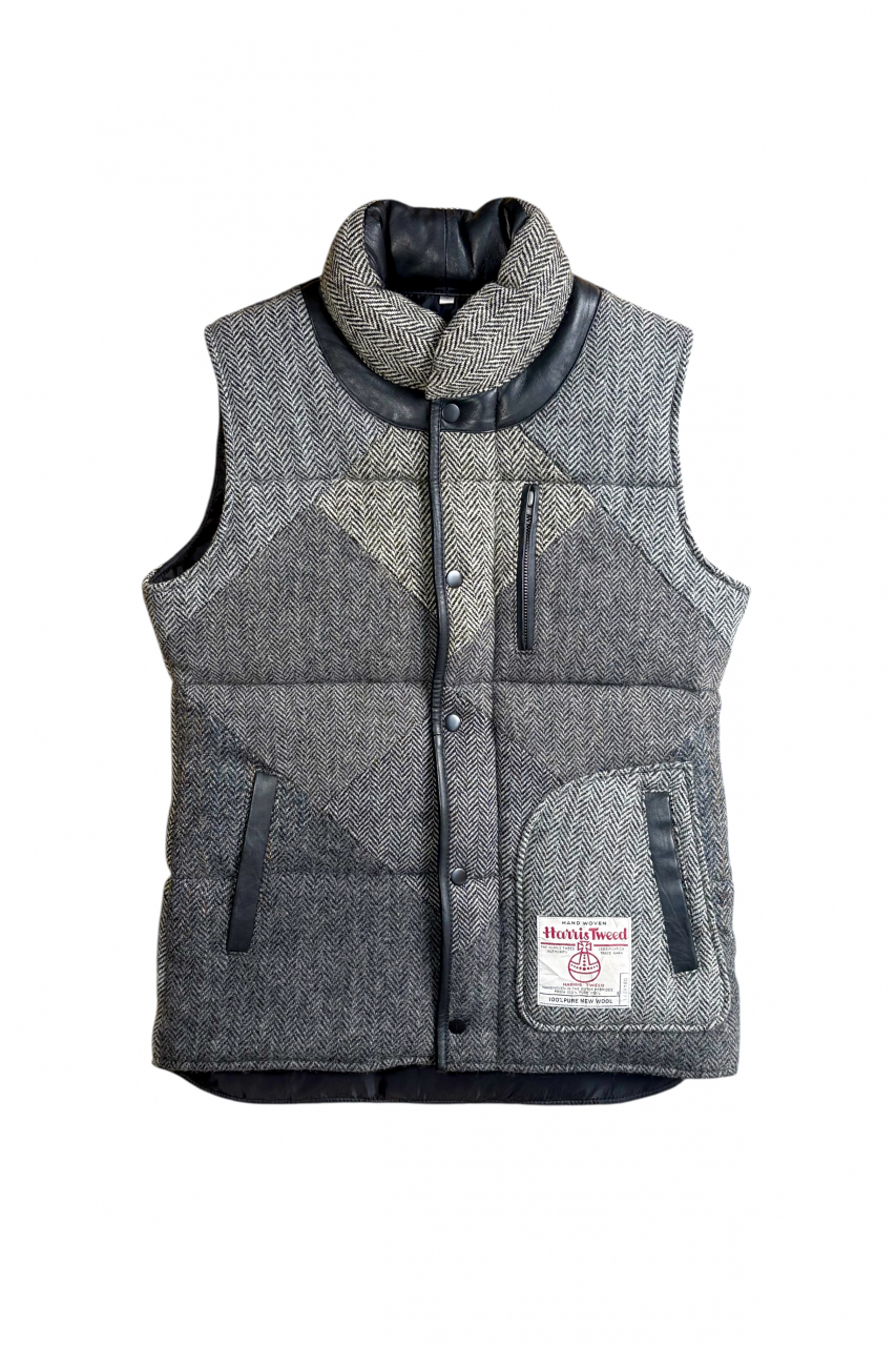 Upcycled Harris Tweed Padded Gilet with Leather Trim (HTMGLTXL5)