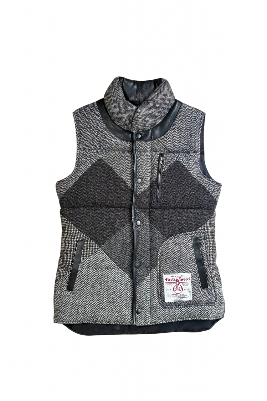 Upcycled Harris Tweed Padded Gilet with Leather Trim (HTMGLTS2)