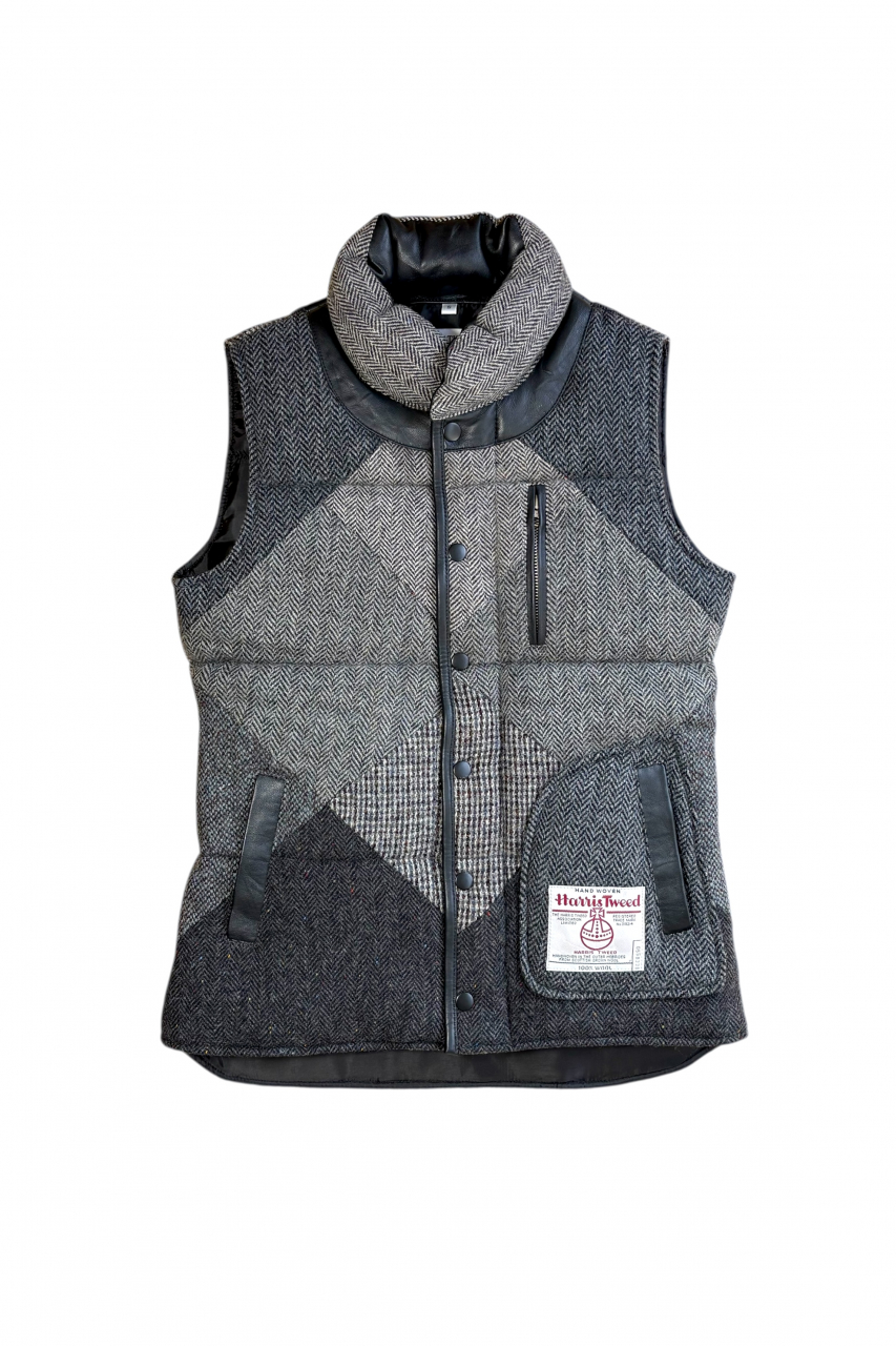 Upcycled Harris Tweed Padded Gilet with Leather Trim (HTMGLT2XL1)